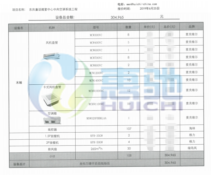 項目內(nèi)容:麥克維爾風機盤管設備安裝調試工程