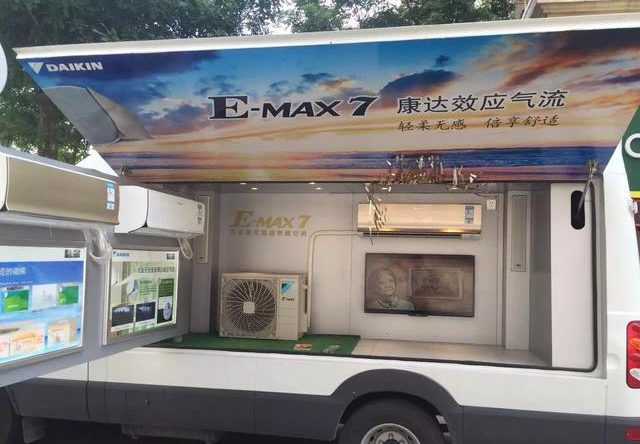 如果只是一些產品的展示,很難呈現出中央空調的效果。安裝有實體機器的移動展示車,就相當于把空調的實景體驗廳開到了小區,讓消費者自己去體驗產品到底好在哪里。