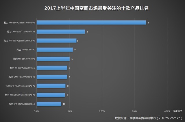 2017上半年中國空調市場最受關注的十款產品排名